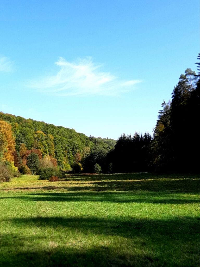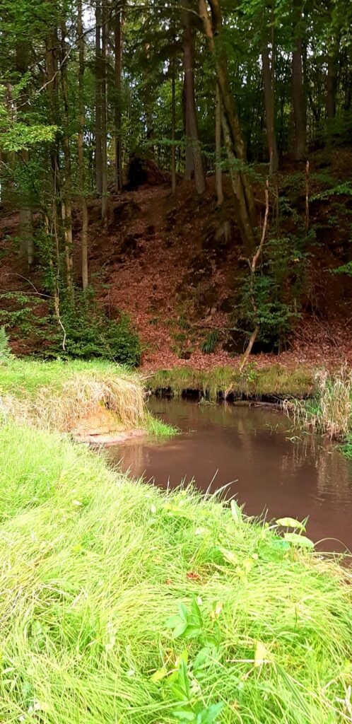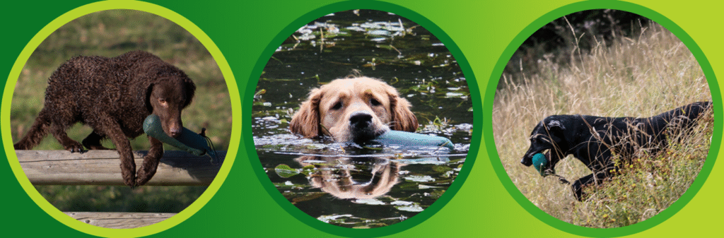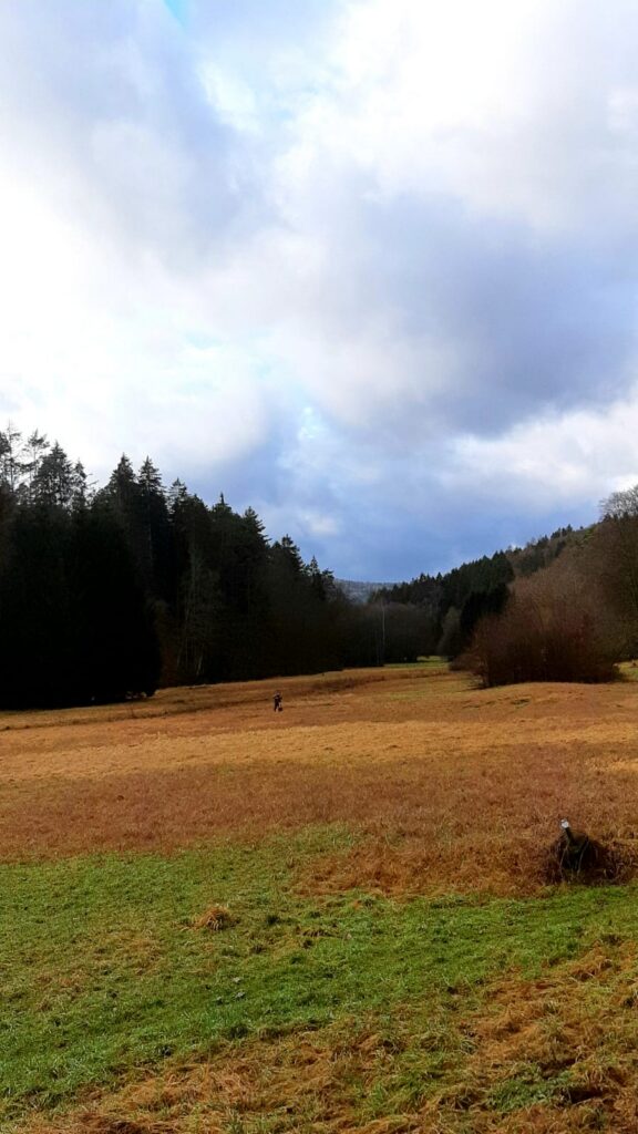 Weitläufige Wald- & Wiesenflächen mit niedrigem und hohem Bewuchs, teilweise mit leichter bis hin zu starker Steigung. Diverse umgefallene Bäume und andere „natürliche Hindernisse“, Gräben, Bachläufe und ein großes Gewässer – kurz gesagt: Alles, was das Retriever-Herz begehrt!